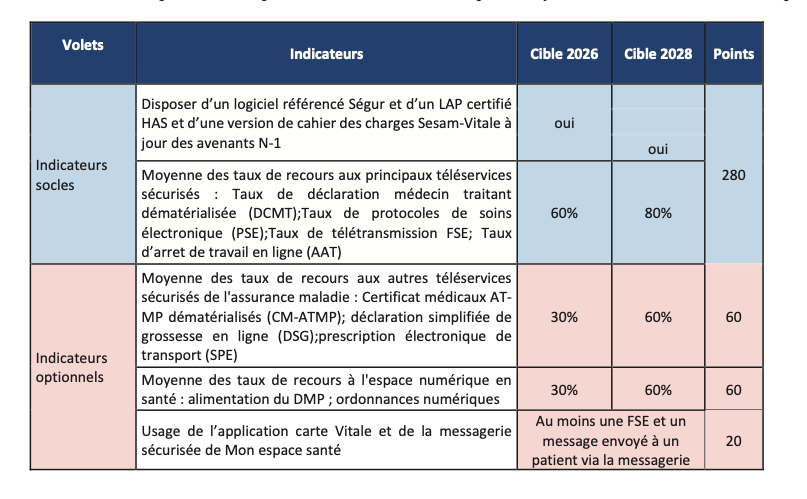 La nouveauté c’est le panachage des items, dont la moyenne d’utilisation doit atteindre un certain taux, et le fait que si un item précis n’est pas pertinent (déclaration de grossesse par exemple pour les ORL ou les pédiatres) il est retiré de l’indicateur.