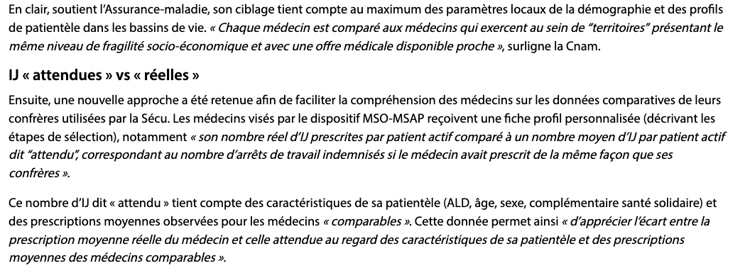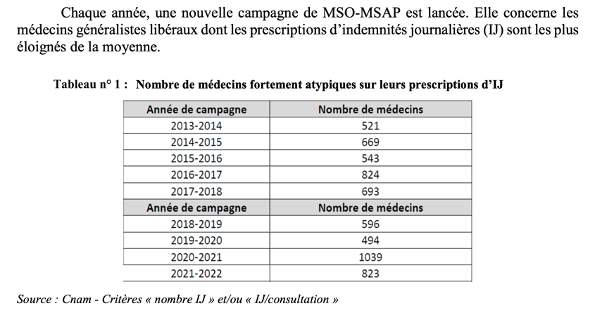 À la fin, le praticien reçoit son chiffre magique : le nombre d’arrêts « qu’il aurait dû » prescrire, s’il avait pratiqué « comme ses confrères ». Et s’il s’écarte trop ? Convocation, MSO, MSAP.