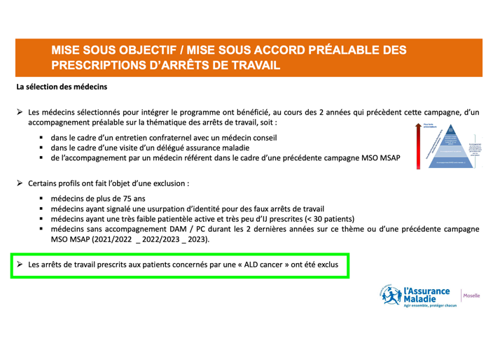 Cerise sur le PowerPoint le dispositif s’enfonce dans l’absurde quand on regarde ce qui est pris en compte… ou pas. En effet les arrêts pour cancer sont exclus du ciblage, mais pas ceux pour Parkinson, Charcot, sclérose en plaques, troubles bipolaires.
