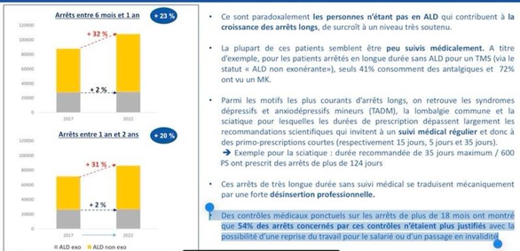 • Pour la CNAM, 54 % des arrêts longs sont injustifiés → il faut les mettre en invalidité.