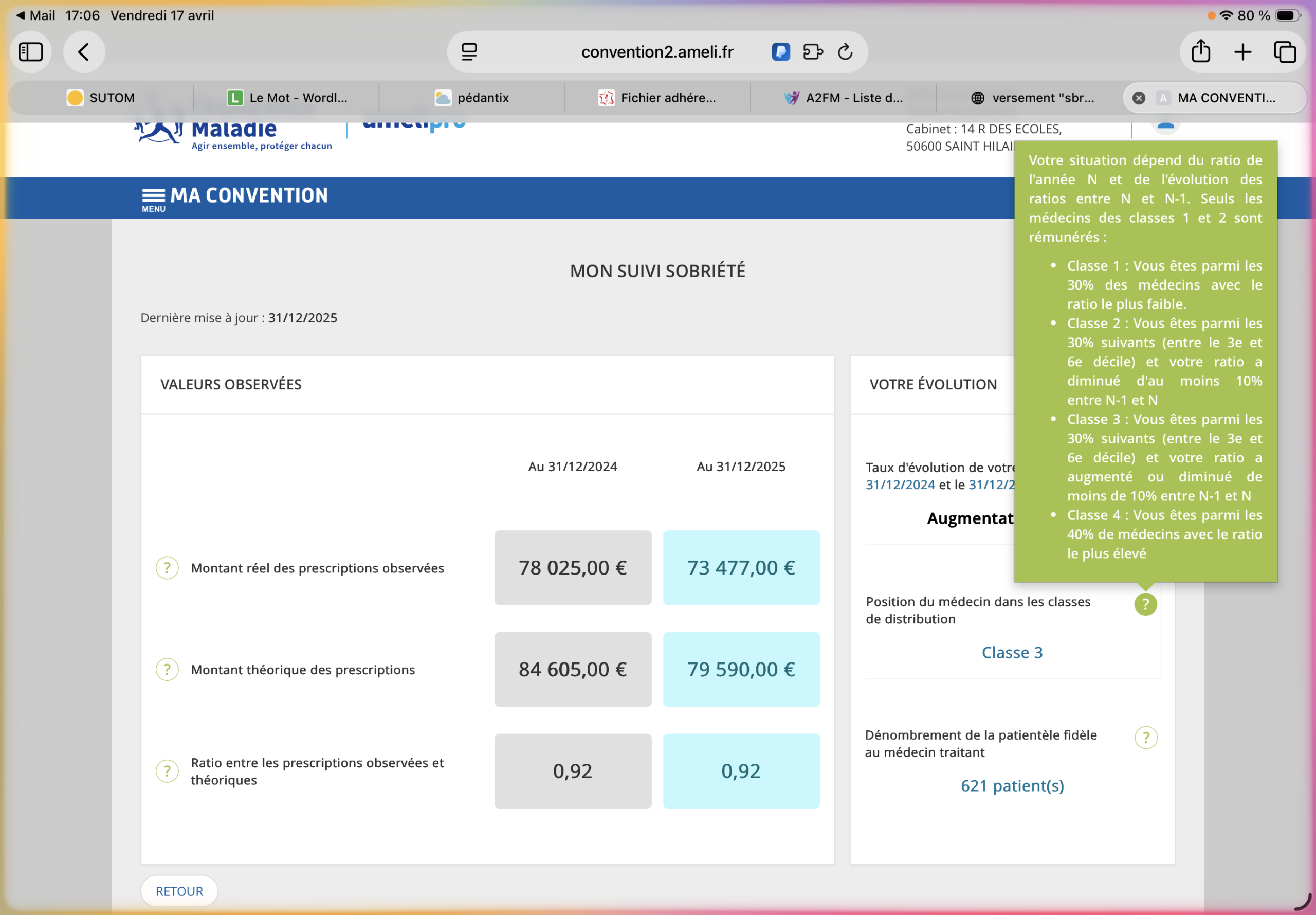 Vous remarquerez tout de même que mes prescriptions ont diminué dans l’absolu (alors que ma patientèle a augmenté de 20% en 2025), le montant théorique aussi, c’est donc que les médecins prescrivent MOINS.
